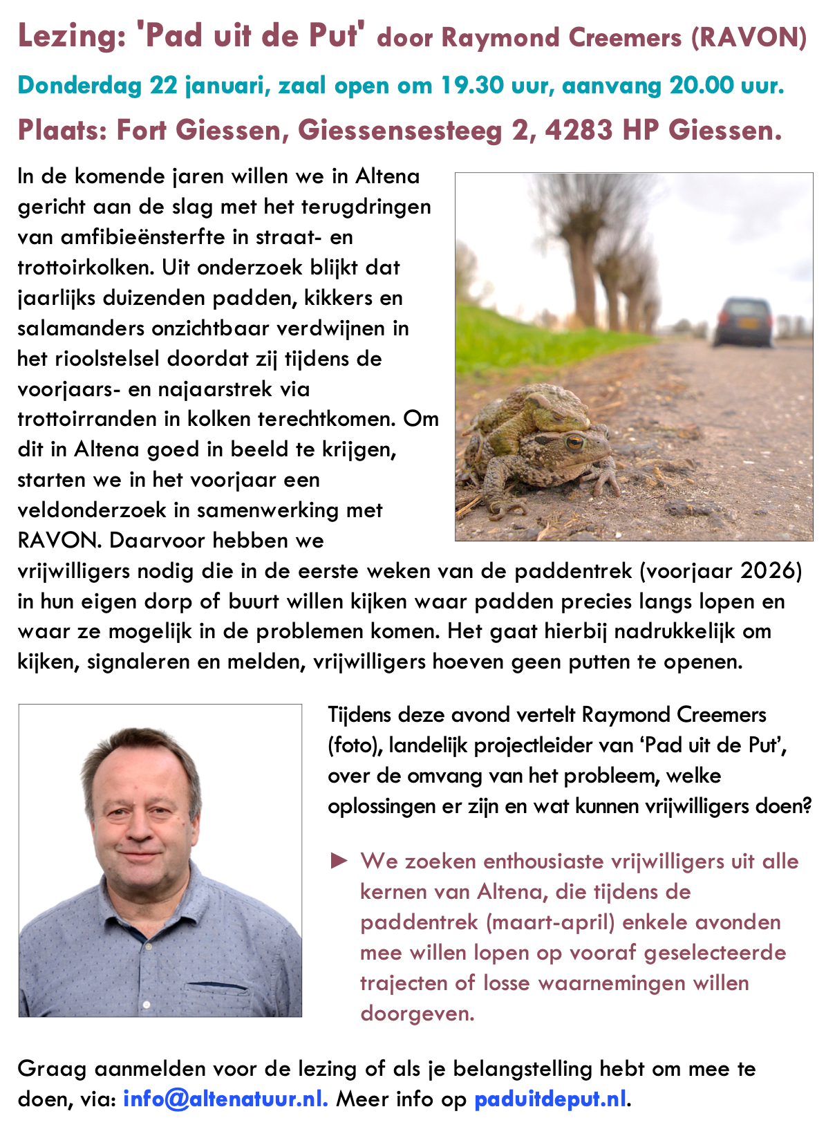 Agenda : - Lezing: 'Pad uit de Put'
